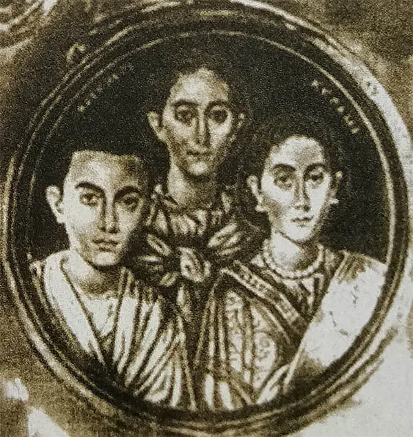 Рим императоры Валентиниан әпкесі Онориямен (Аттиланың әйелі) бірге. Кеседегі сурет
